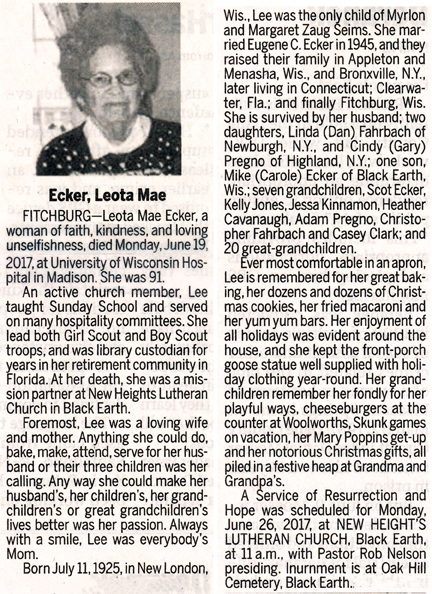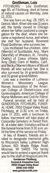 Grothman, Lois Obit Cemetery