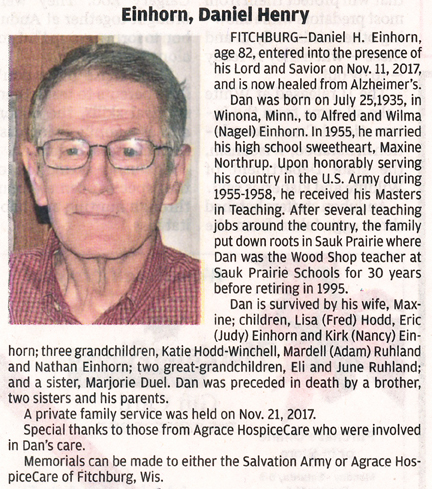 Danielson, Norman Melvin “Dan” Obit Cemetery
