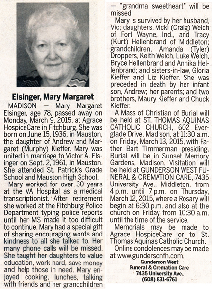 Grinnell, Margaret A. (nee Kietzke) Obit Cemetery