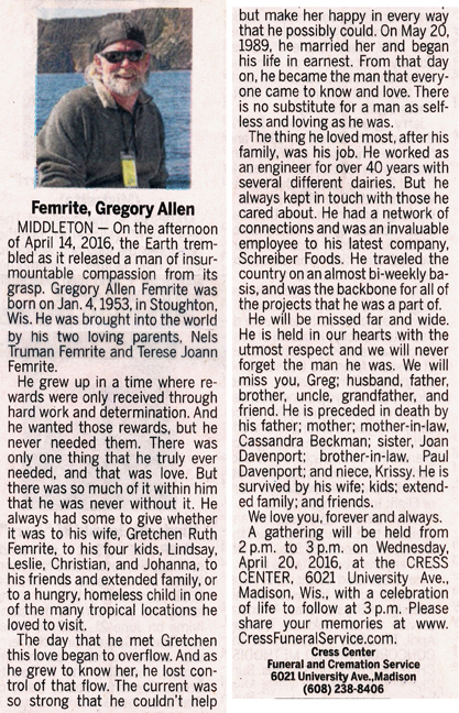 Freng, Larry B. Obit Cemetery