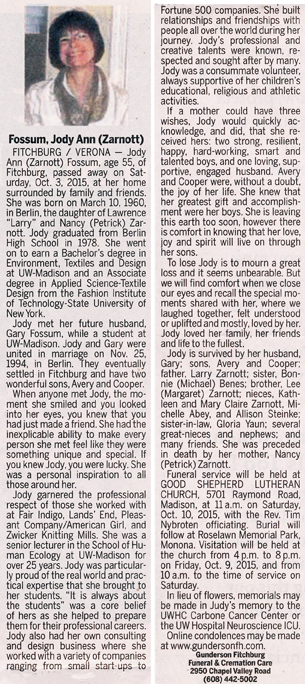 Fossum, Jody Ann (nee Zarnott) obit Cemetery