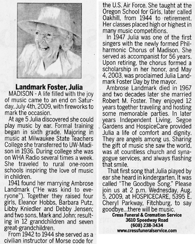 Foster, Julia Isabel (nee Benoy) Landmark obit Cemetery Cemetery