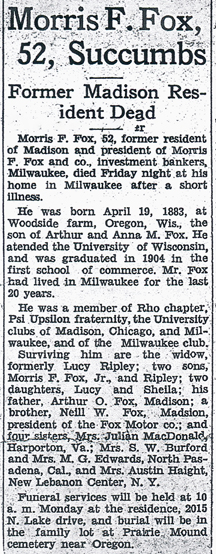 Fox, Morris F. obit Cemetery