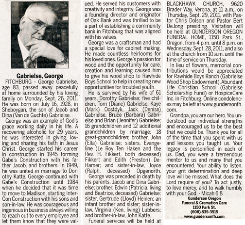 Gabrielse, George Obit Cemetery