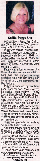 Gallitz, Peggy Ann (nee Turner) Obit Cemetery