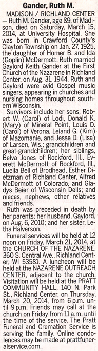 Gander, Ruth M. (nee McDermott) Obit Cemetery