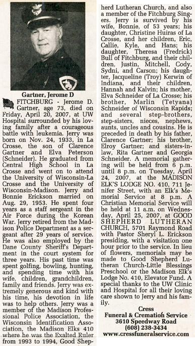 Gartner, Jerome Obit Cemetery