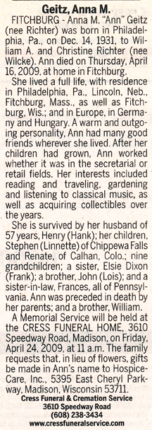 Geitz, Anna M. (nee Richter) Obit