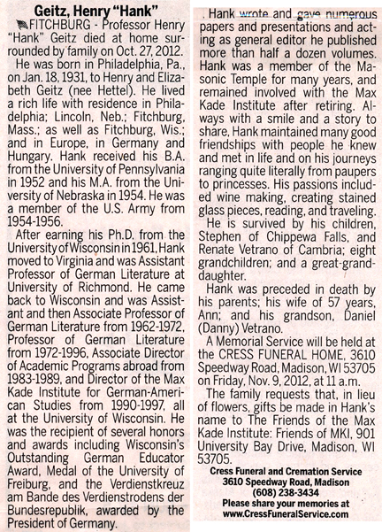 Geitz, Henry “Hank” Obit