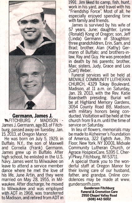 Germann, James J. Obit Cemetery