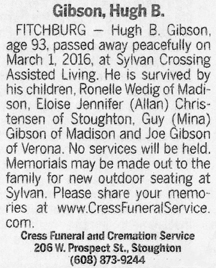 Gibson, Hugh B. Obit Cemetery