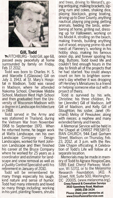 Gill, Todd Obit Cemetery