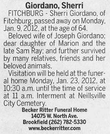 Giordano, Sherri (nee Ray) Obit Cemetery