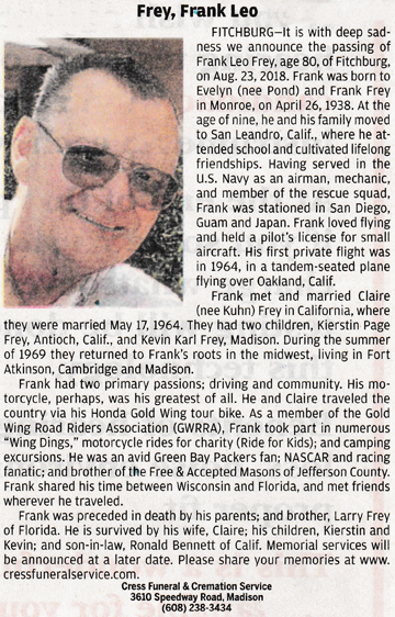 Frey, Frank Leo Obit