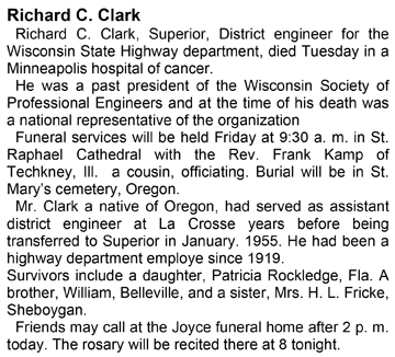 Clark, Richard C. Obit Cemetery