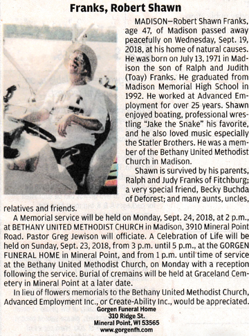 Franks, Robert Shawn Obit Cemetery