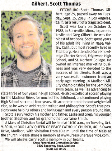 Gilbert, Scott Thomas Obit