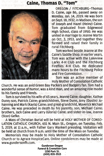 Caine, Thomas D. “Tom” Obit Cemetery
