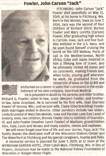 Fowler, John Carson “Jack” Obit Cemetery