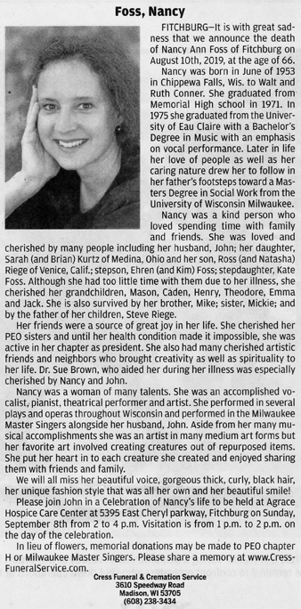 Foss, Nancy Ann (nee Conner) Obit