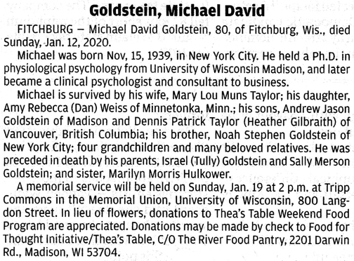 Goldstein, Michael David Obit