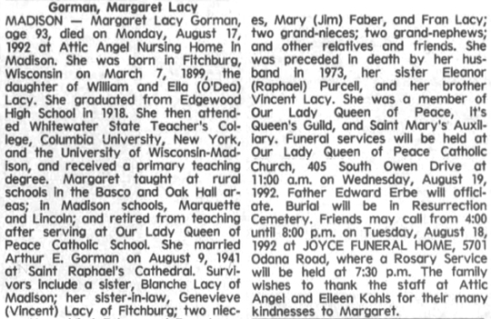 Gorman, Margaret Bernice (nee Lacy) Obit Cemetery