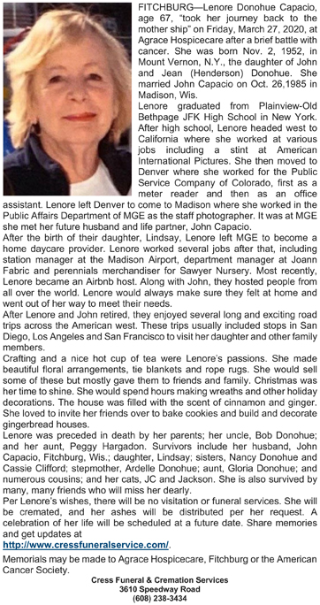 Capacio, Lenore (nee Donohue) Obit