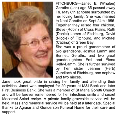 Geraths, Janet E. (nee Whalen) Obit Cemetery