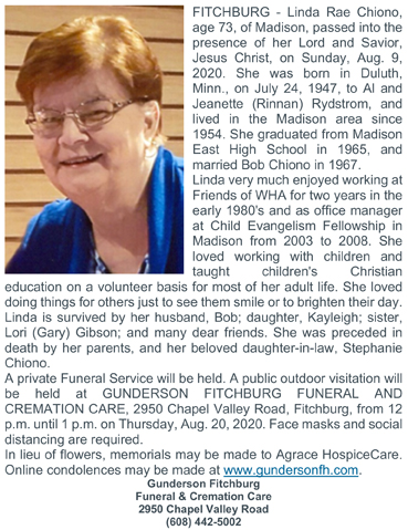 Chiono, Linda Rae (nee Rydstrom) Obit