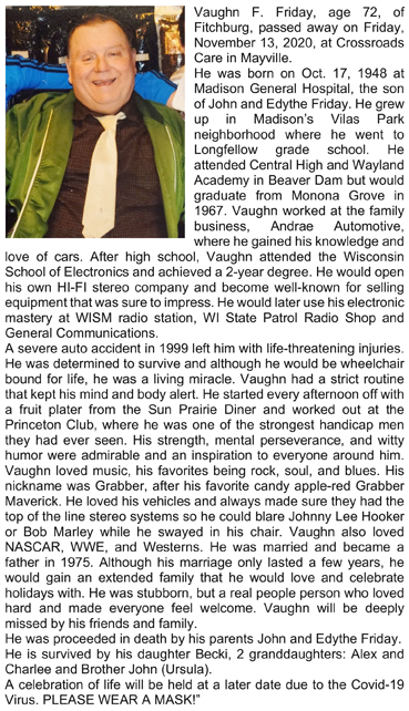 Friday, Vaughn F. Obit
