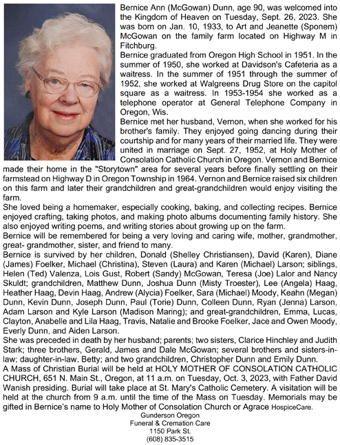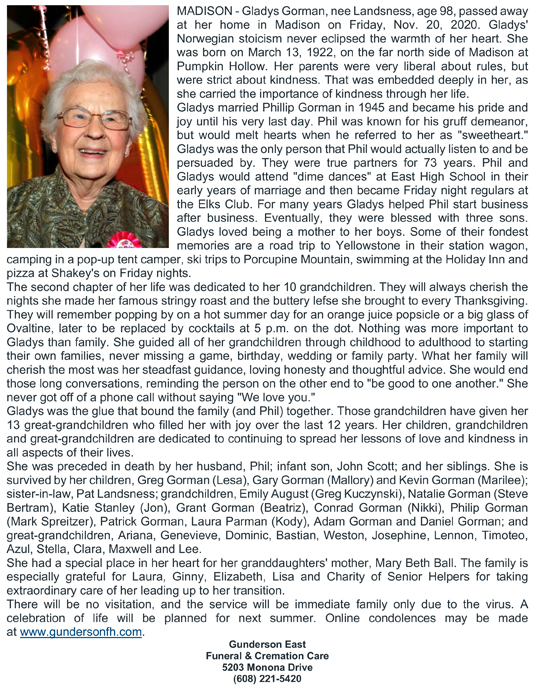 Gorman, Gladys (nee Landsness) Obit Cemetery