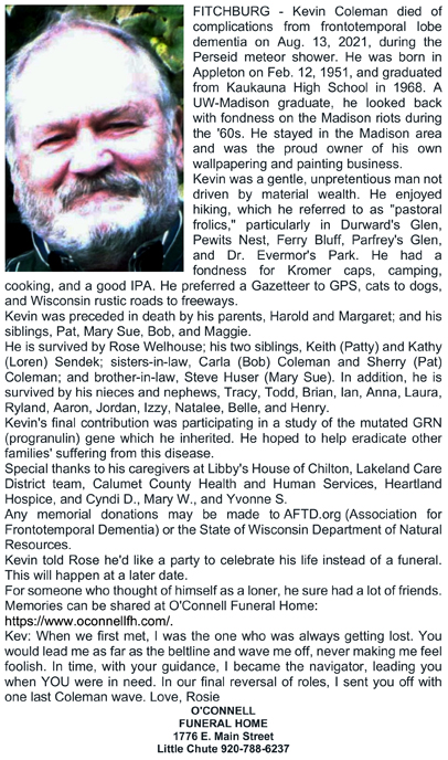Coleman, Kevin Obit