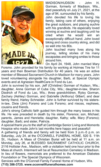 Gorman, John Herbert Obit Cemetery
