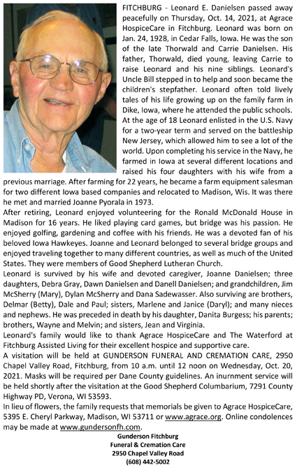 Danielsen, Leonard E. Obit Cemetery