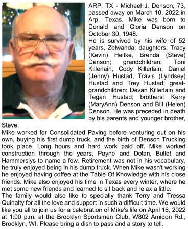 Crowe, Michael Sr Obit Cemetery