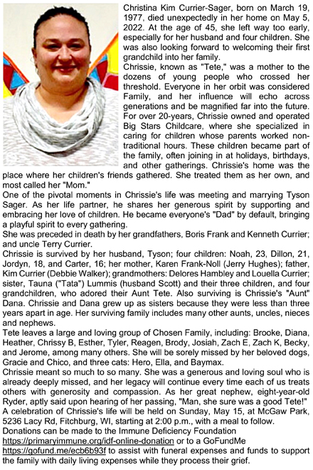 Currier-Sager, Christina Kim “Tete” Obit