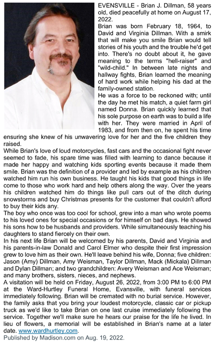 Gillam, Bradley Michael Obit