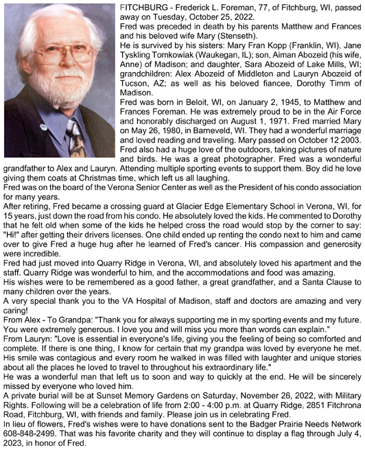 Foreman, Frederick L. Obit