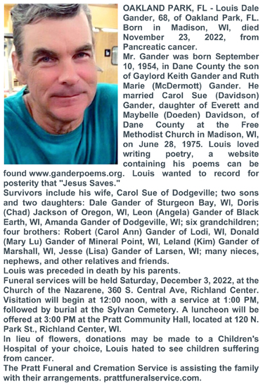 Gander, Louis Dale Obit Cemetery