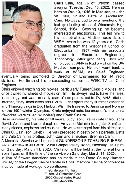 Cain, Christopher James Obit