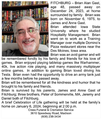 Gast, Brian Alan Obit