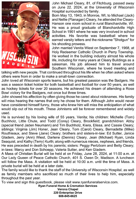 Cleary, John Michael Obit Cemetery