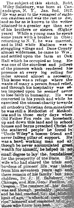Salisbury, Robert Wiley Obit Cemetery