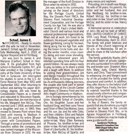 Schad, James Edward Obit