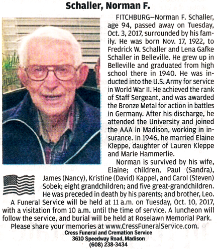 Schaller, Norman F. Obit Cemetery