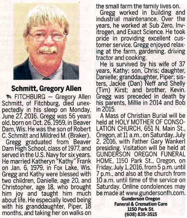 Schmitt, Gregory Allen Obit