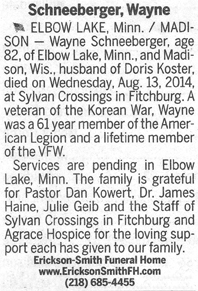 Schneeberger, Wayne Orton Obit Cemetery
