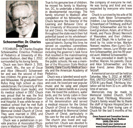 Schoenwetter, Charles Douglas, Dr. Obit