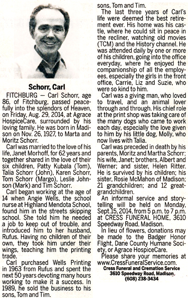 Schorr, Carl Obit