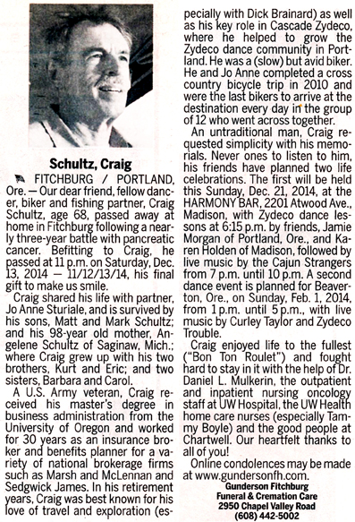 Schultz, Craig Obit
